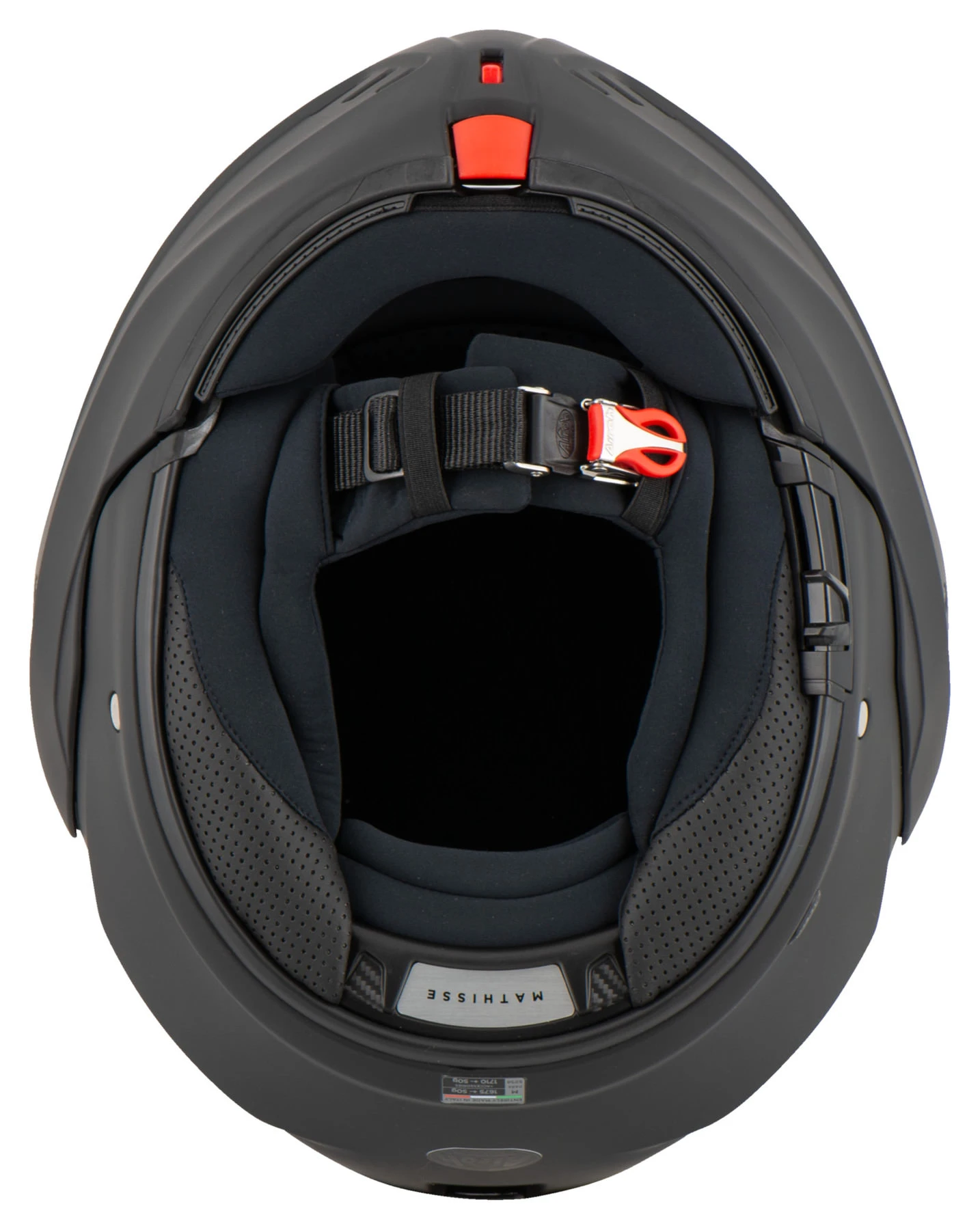 Everyone take a look: a masterpiece is back! Airoh has reissued the legendary flip-up helmet *Mathisse*. However, there are small differences to the first generation: although its unmistakable design and unique style have remained. But Airoh has given this Matthisse version a contemporary, modern technology on the road to success. The 180° pivoting chin section increases the versatility of the helmet. You can ride it both as an integral and also as a jet helmet. The double shell made of HRT (High Resistant Thermoplastic), two homologations, the Bluetooth preparation, the integrated sun visor and the wind deflector make it the ideal companion with which you drive everywhere in style. With the Pinlock anti-fog lens you always keep a good view.