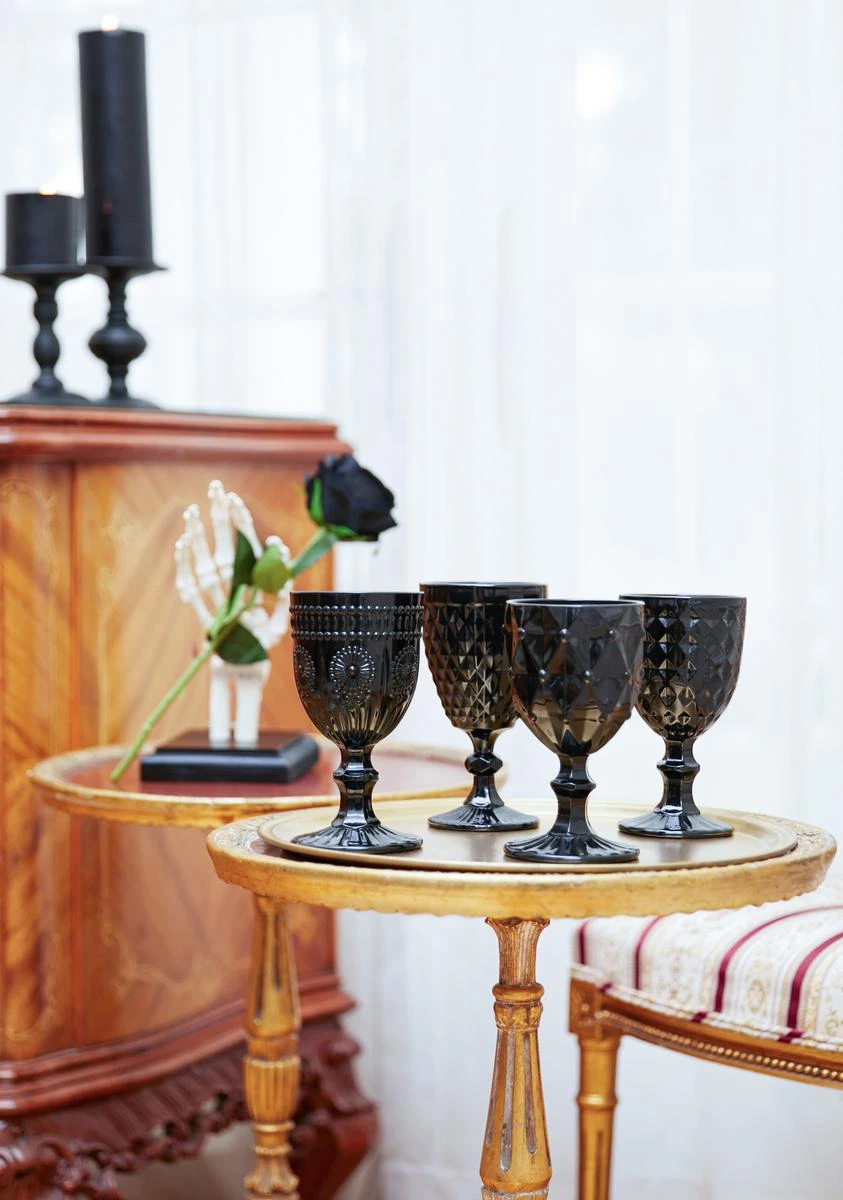 let’s make a toast to the ghost I love most. This goblet set includes four antique Victorian style mini cups, each with a different surface relief pattern.