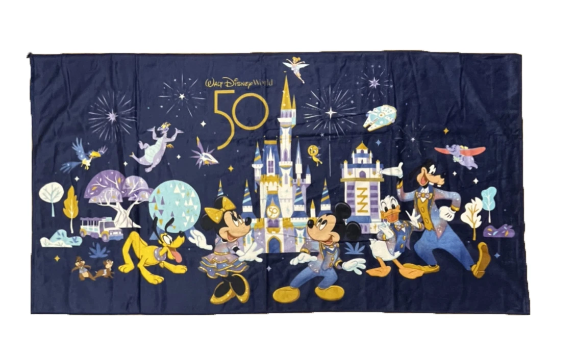 Celebrate happy memories with you to the beach, or poolside. Features Walt Disney World 50th Anniversary Icons and 4 Parks.
