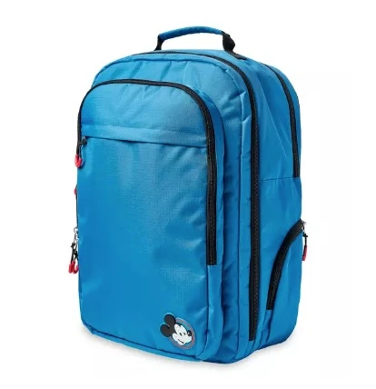The best traveling companion of all time, Mickey is ready to go anywhere adventure calls. This Mickey Mouse travel backpack is built for excursionsâwhether you’re heading cross town or around the world. Lightweight yet sturdy, it features two large zippered compartments plus a handy front zip pocket designed to hold items you might need in a jiffy like your passport or the rewards card to your local coffee shop. The Mickey patch on the front adds smiles to every mile. The easy-to-find red padded zipper pull cords are convenient and cool looking because, why not? Traveling in style is what you do.