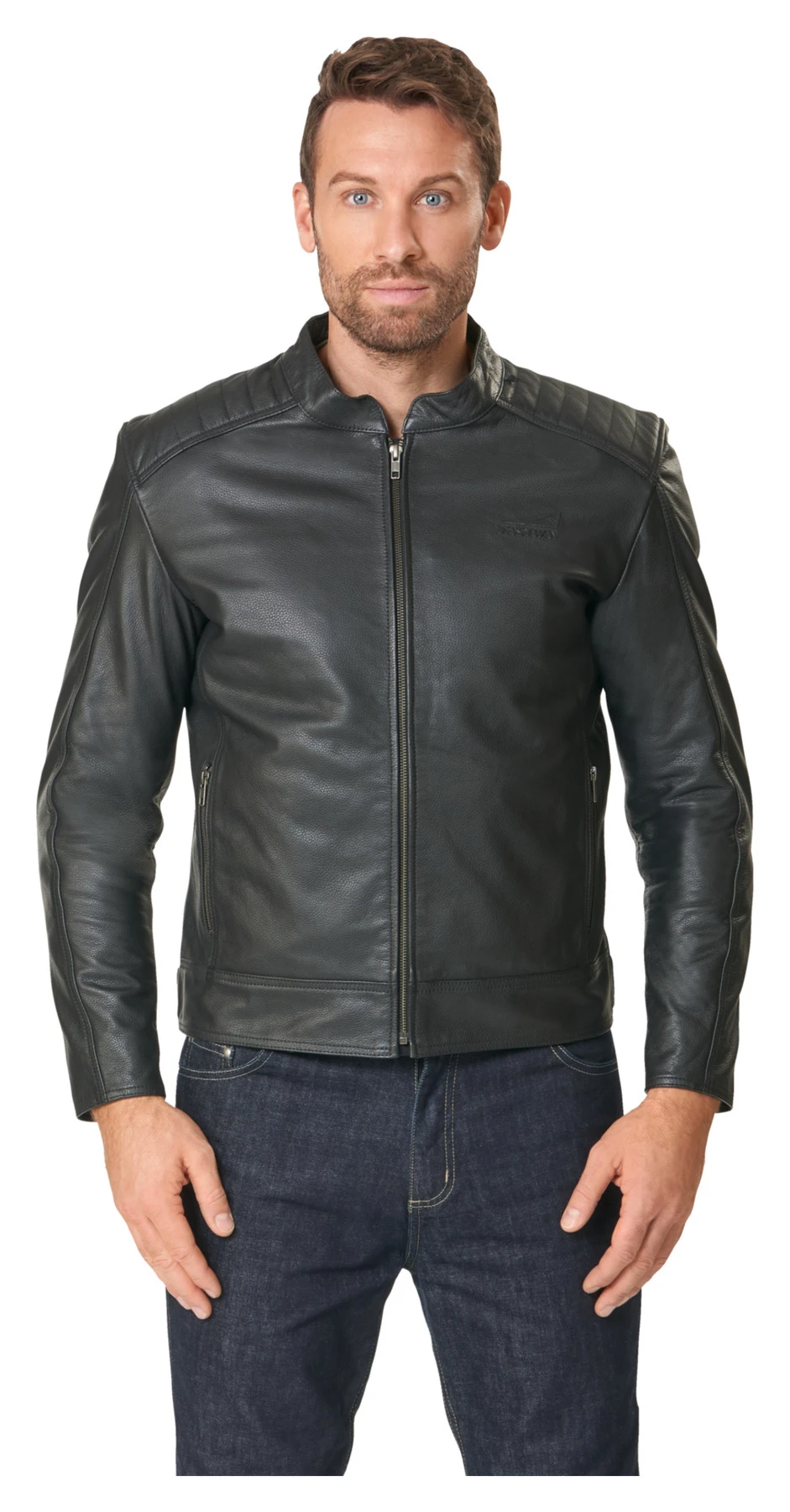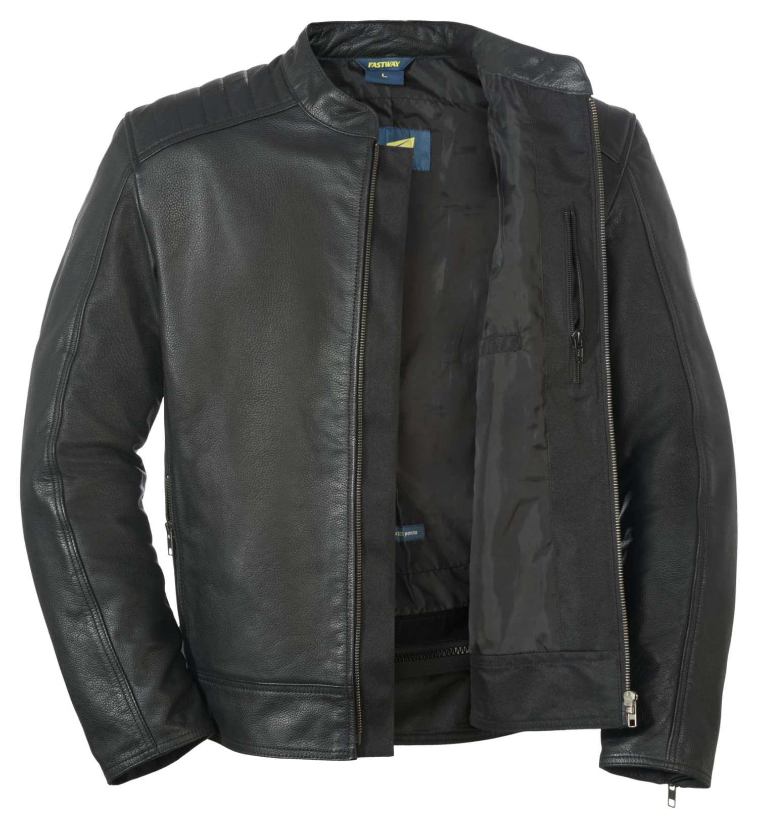 The Fastway *City Men 211* leather jacket is a classic motorbike jacket in terms of style. A straight cut, with quilted double material on the shoulders and an upright collar, all made from strong leather. So the Fastway *City Men 211* looks great both as leisurewear and on your bike.