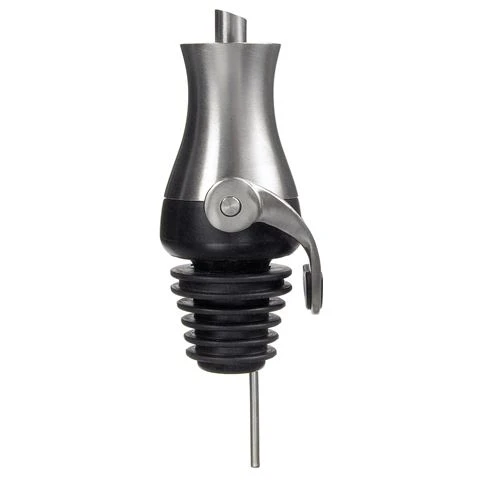 The Oil Stopper/Pourer is perfect for pouring oil without the mess, then storing to retain freshness. Push the soft, comfortable lever down to seal for storage. Lift the lever up when you’re ready to pour. Flexible ribs make it easy to insert and remove from bottles.