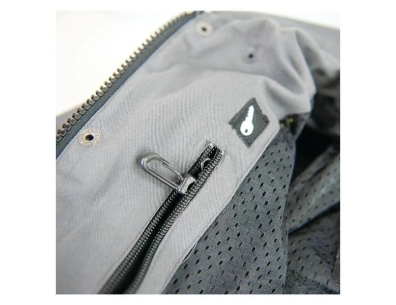 - Dual zippered chest pockets