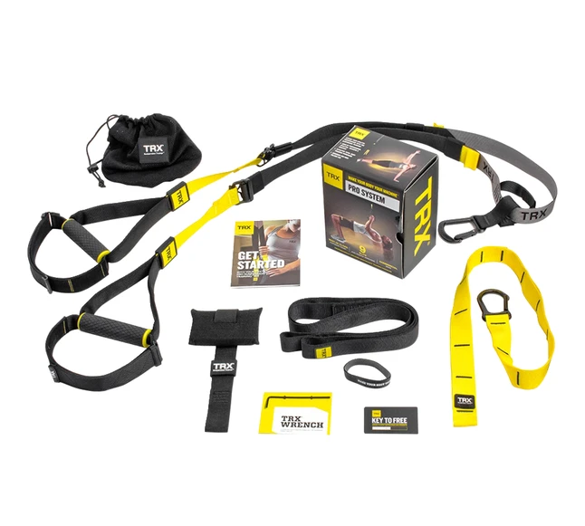 The TRX Pro 4 system includes our most versatile Suspension Trainer and the TRX app, designed to let you fully personalize your workout. It has adjustable and padded foot cradles, upgraded webbing, and custom antimicrobial-treated textured rubber handles. Includes three types of anchoring solutions and a free one-year subscription to the TRX app.