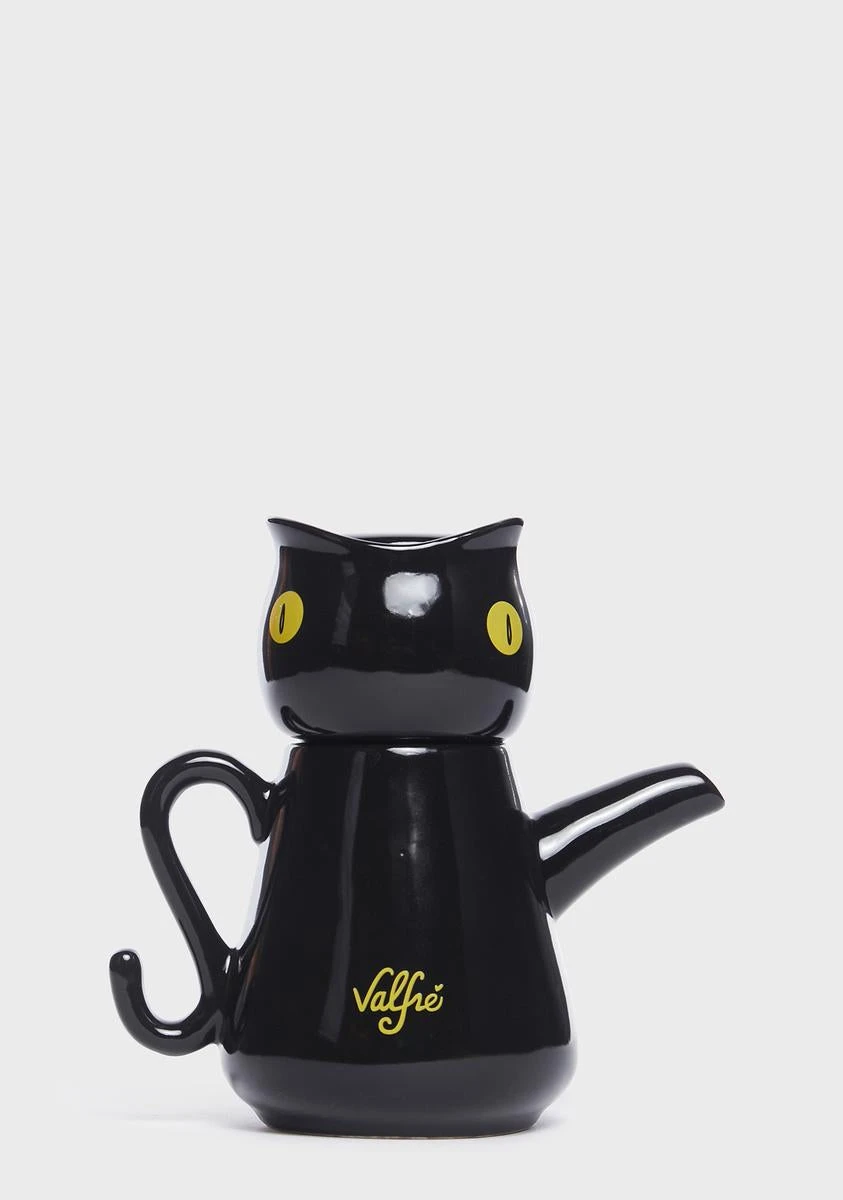 watch your luck. This tea set comes in a ceramic construction, with a stackable tea cup and pot, and cat details.
