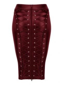 Gothic Faux Leather Back Zipper Lace-up Wrap Midi Skirt